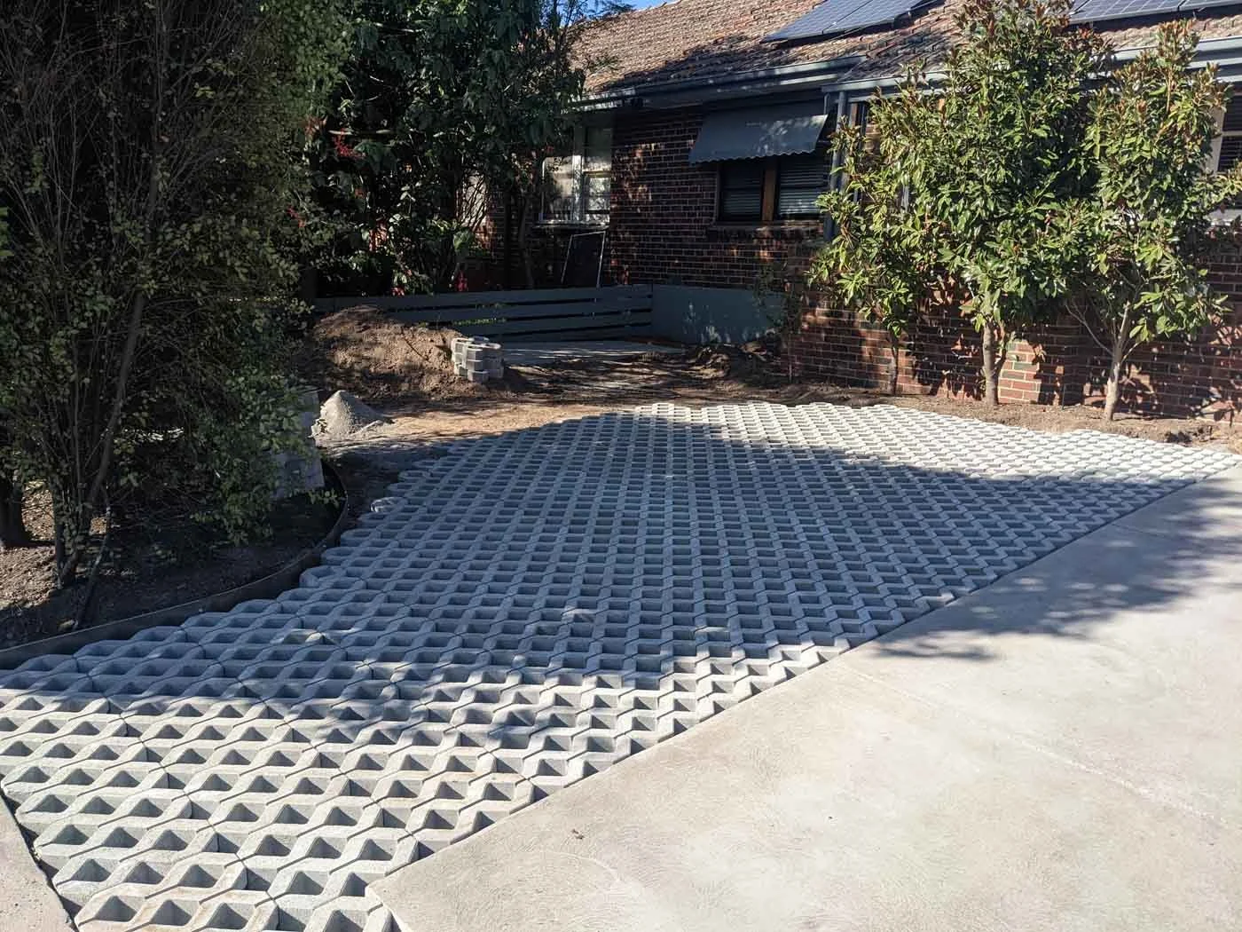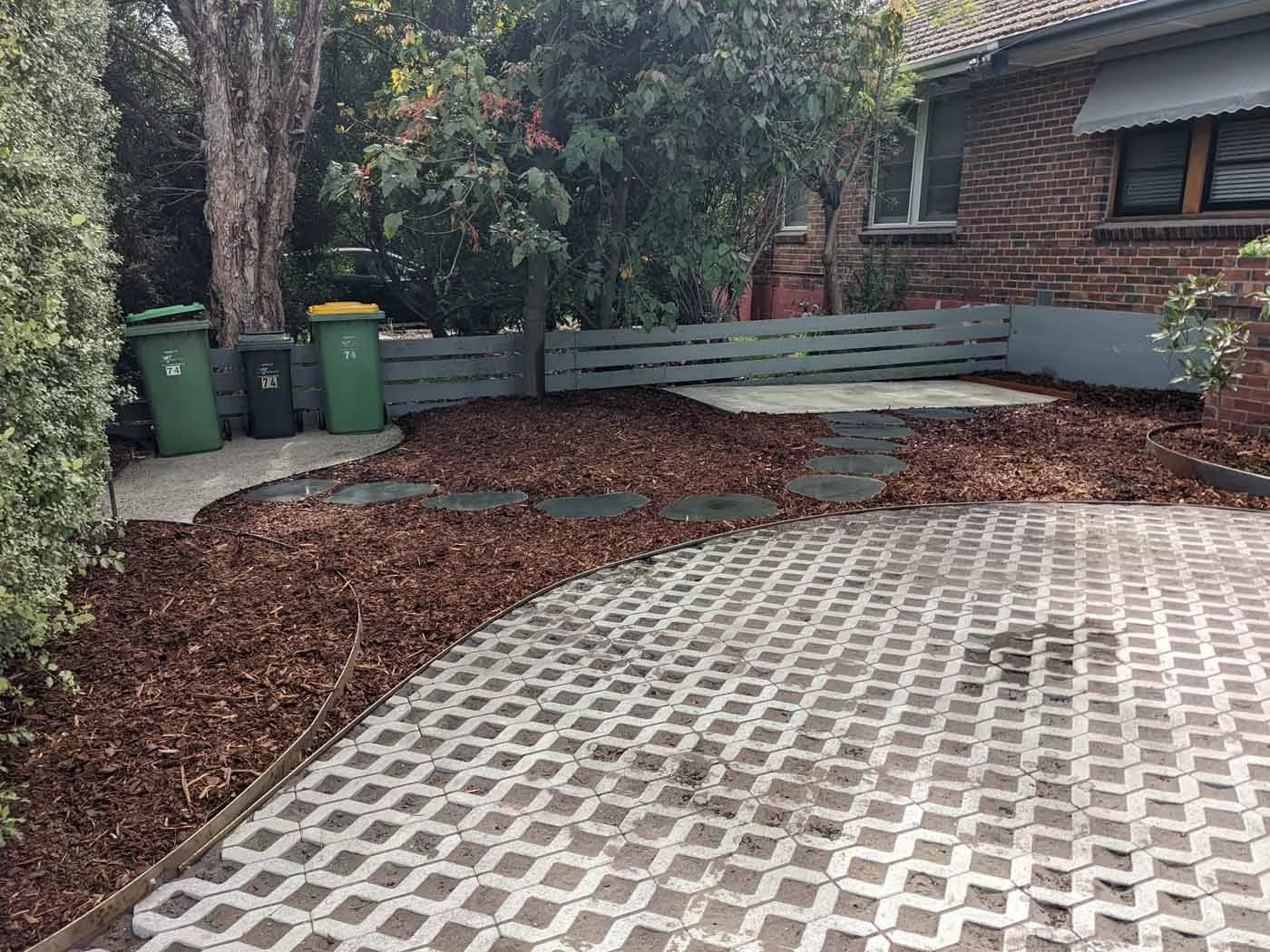 PROJECT IIITotal front yard makeover, featuring steel edging, a new shed and an additional parking space on grass pavers.